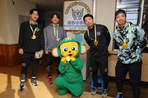 村上選手、森下選手らが春季キャンプ地の小学校を訪問し交流会に参加