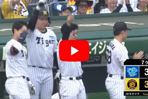 2026/04/18 7回裏、森下翔太選手の右中間タイムリーツーベースヒットで再び同点
