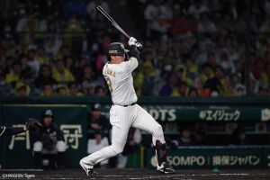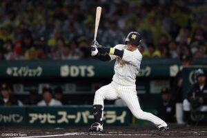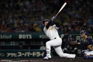3回裏二死、近本は三遊間を抜ける打球でチーム初安打を記録